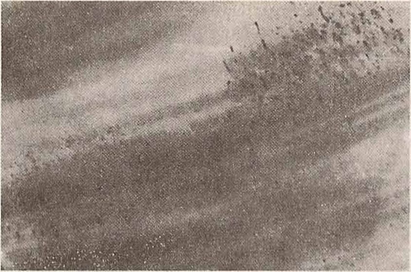 ![]() | Рис. 9.12. Изогнутые полосы и облака пузырьков в синтетической красной шпинели. |