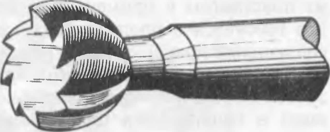 Борами можно выполнять объемные, рельефные и контурные работы. Для написания текстов применяют в основном шаровидные боры. С целью достижения отчетливой проработки деталей букв граверы, как правило, стачивают кончик шарика у бора (рис. 64).